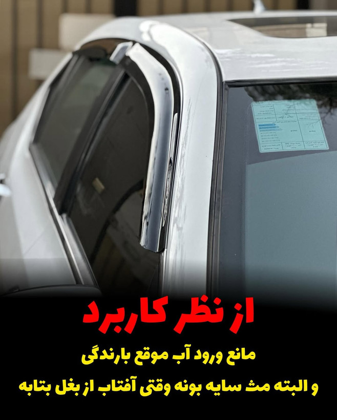 یه آپشن کاربردی و در عین حال خوشاستایل باعث میشه ظاهر ماشینت درشتتر و سنگینتر دیده بشه مثل سایهبان، جلوی تابش مستقیم آفتاب از زاویه جانبی رو میگیره و مخصوصاً الان که فصل بارندگیه ، مانع ورود آب بارون به داخل میشه.